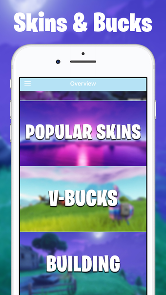 Guide Skins voor Fortnite werkt op iOS 16.4 en hoger. De huidige versie van de software is 1.1 en je kunt het in het Duits, Frans en Koreaans krijgen.